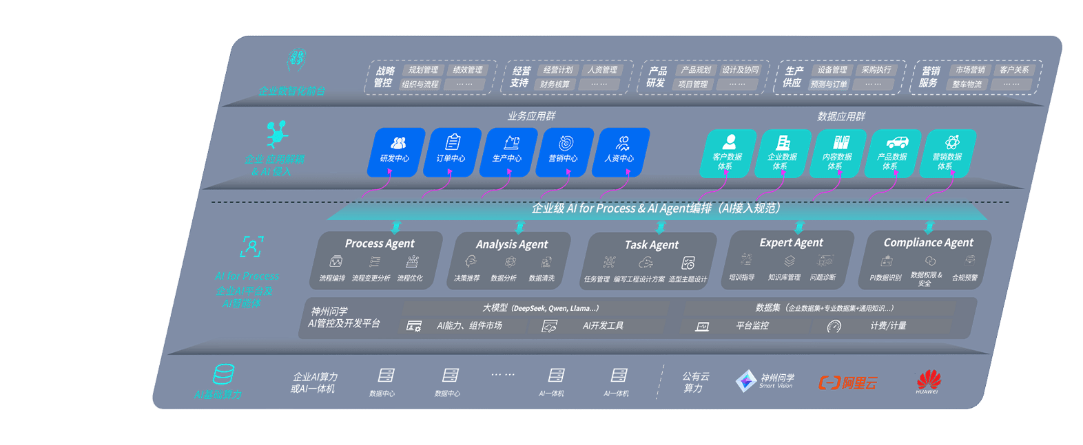 NG28问学智车解决方案是一套基于AI技术的汽车行业智能化系统,,覆盖从底层算力到顶层AI应用的全栈方案。。。方案由算力层、、模型层和应用层组成:算力层,,,方案支持多种一体机配置,,,,具备云端灵活部署、、、多云适配以及动态优化计算资源的能力;模型层,,NG28问学平台版提供了企业级AI应用一站式构建与管理平台,,,,支持基于后训练强化技术的汽车企业专属模型的训练、、、评测和运营;应用层,,,,NG28问学DeepSeek版提供包括超级员工、、、智能招采、、智能营销、、、、智能客服、、、、AI for BI等一系列解决方案,,可助力汽车行业实现数字化转型,,,,让管理更智能、、响应更敏捷。。